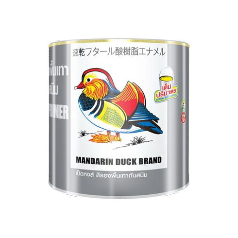 สีรองพื้นที่มีส่วนผสมของผงสี และอัลขีดเรซินคุณภาพสูง ป้องกันสนิม ทาเรียบ และยึดเกาะบนพื้นผิวโลหะได้ดี ใช้ทารองพื้นก่อนทาทับหน้าด้วยสีเคลือบเงาตราเป็ดหงส์