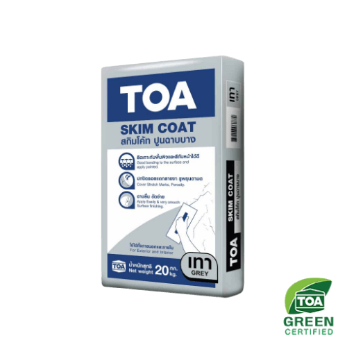 ทีโอเอ สกิมโค้ท ปูนฉาบบางสำเร็จรูป ฉาบบางได้ถึง 0.5 – 2 มิลลิเมตร สำหรับฉาบตกแต่งผิวคอนกรีต รอยแนวตะเข็บจากการถอดแบบของคอนกรีต ฉาบลื่น ขัดง่าย ไม่เปลืองแรง สามารถปกปิดรอยแยก รอยแตกลายงา อุดรูพรุนตามด รูโพรงอากาศ ทำให้พื้นผิวหลังจากฉาบแล้วเรียบเนียน ใช้ได้ทั้งภายนอกและภายใน