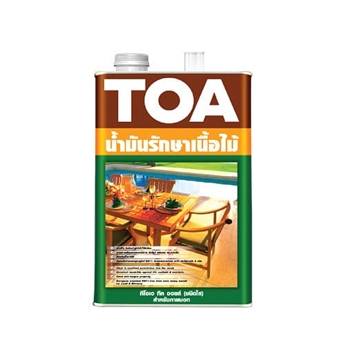 ทีโอเอ ทีค ออยล์ ผลิตจาก โมดิไฟด์ ออยด์ มีส่วนผสมของสารเติมแต่งชนิดพิเศษ เหมาะสำหรับงานปรับสภาพไม้เก่าให้ดูใหม่ ช่วยปกป้องไม้จากเชื้อราและแมลงกัดกินไม้ เนื้อสีซึมลึกเข้าสู่เนื้อไม้ จึงช่วยป้องกันน้ำซึมได้ดีเยี่ยม ให้พื้นผิวเรียบเนียนเป็นธรรมชาติ โดยไม่เกิดเป็นชั้นฟิล์ม