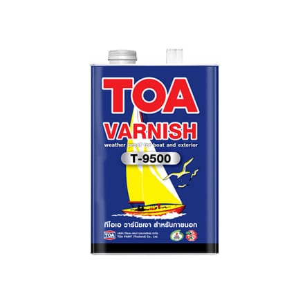 ทีโอเอ วาร์นิชเงา T-9500 เหมาะกับงานไม้ภายในและภายนอกทุกชนิด ให้ฟิล์มสีที่เรียบ มีความเงาสูง ช่วยป้องกันไม้จากการทำลายโดยรังสียูวี ทนต่อสภาวะอากาศภายนอกได้ดี ป้องกันน้ำซึมได้ดีเยี่ยม แห้งไว ทาแล้วขึ้นฟิล์มเร็ว และมีสีอ่อน ช่วยปกป้องและเพิ่มความสวยงามให้กับเนื้อไม้ตามธรรมชาติ